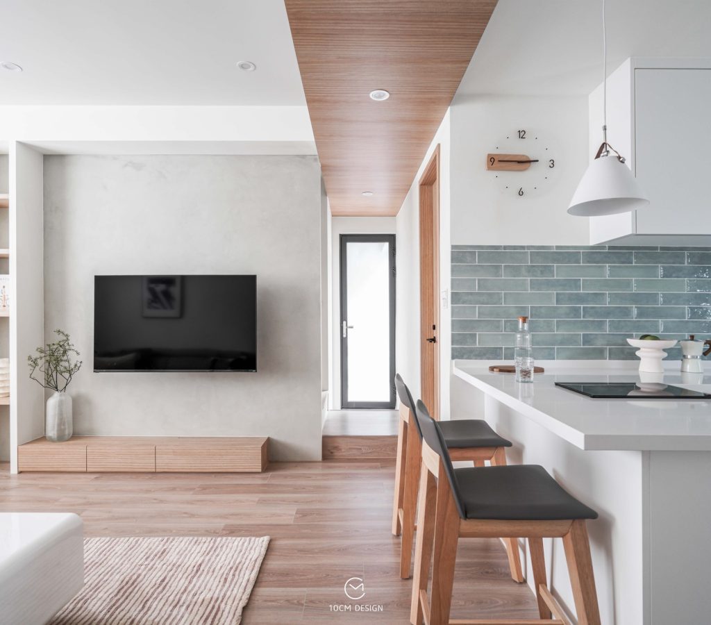 空間除了維持白色的簡潔,原木色與實木窗簾